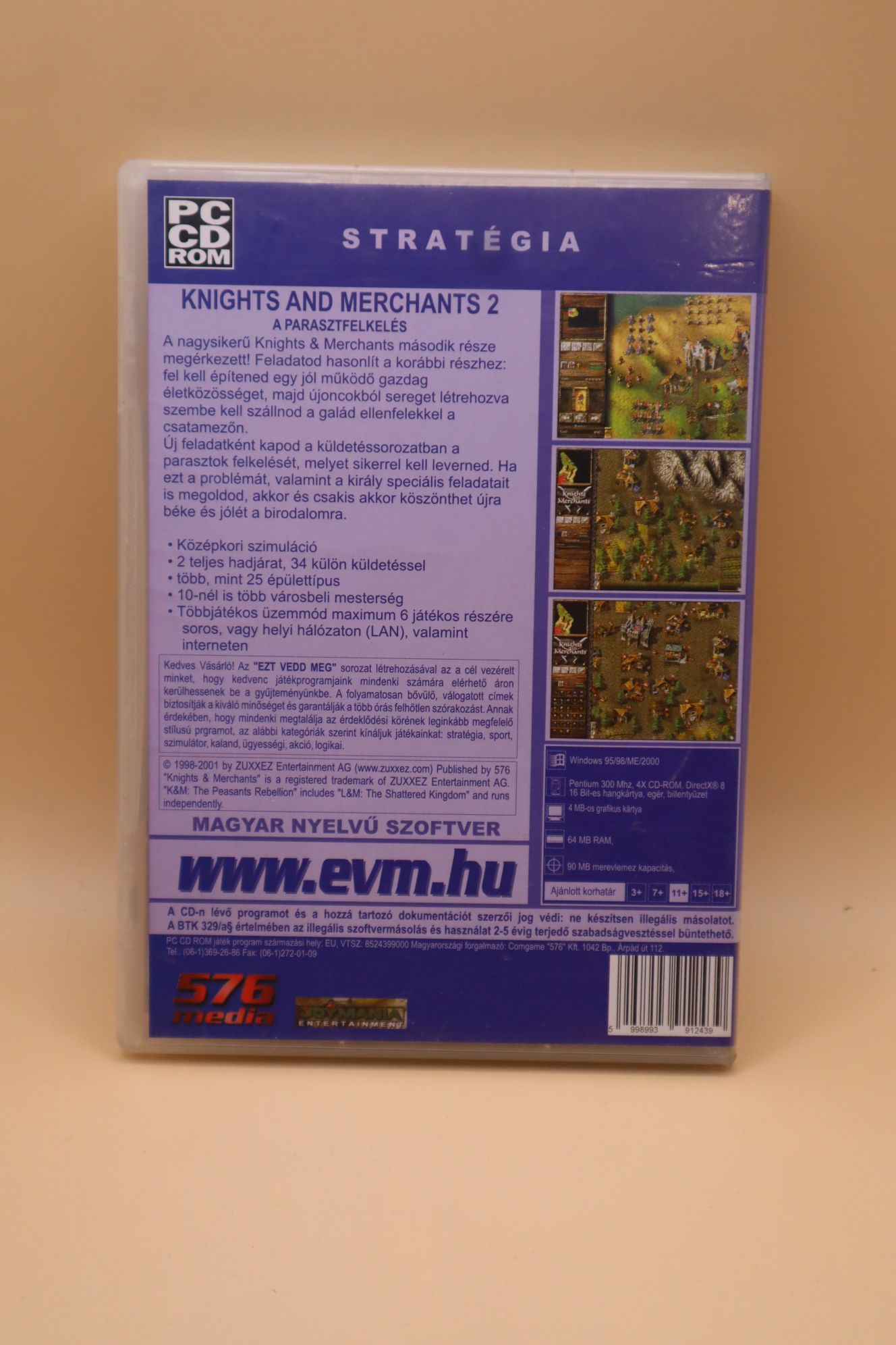 Valósidejű stratégiai játék. Kiadás éve: 2001. Platform: Windows 95/98/ME/2000. A Knights & Merchants: Az elveszett királyság kiegészítője, önállóan fut, tartalmazza az alapjátékot is! Kivitel: DVD tokos, EVM kiadás, magyar nyelvű borítók, rövid magyar nyelvű papírkézikönyv, eredeti cd, magyar szinkronos játék. CD állapota: karcmentes, újnak tűnik