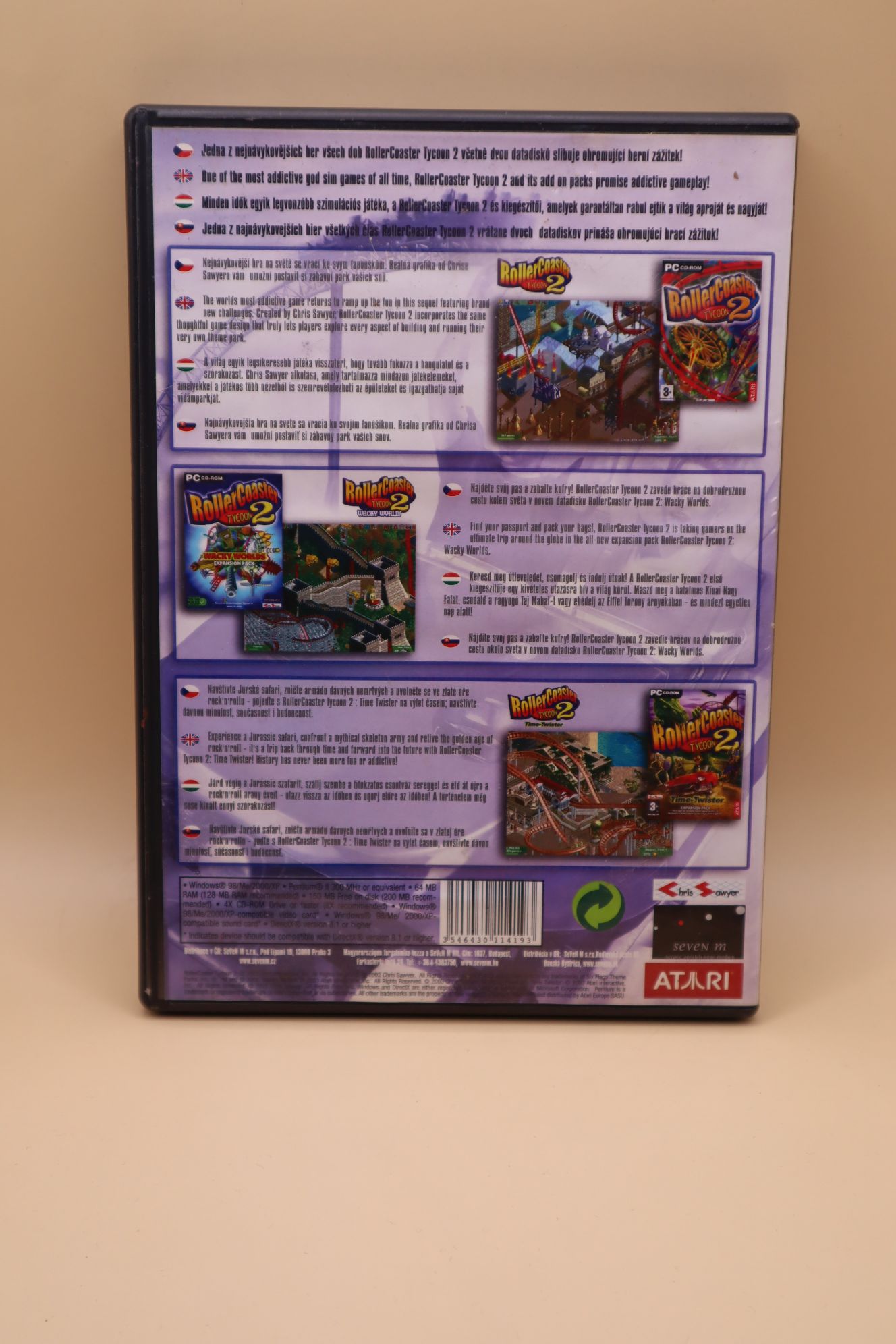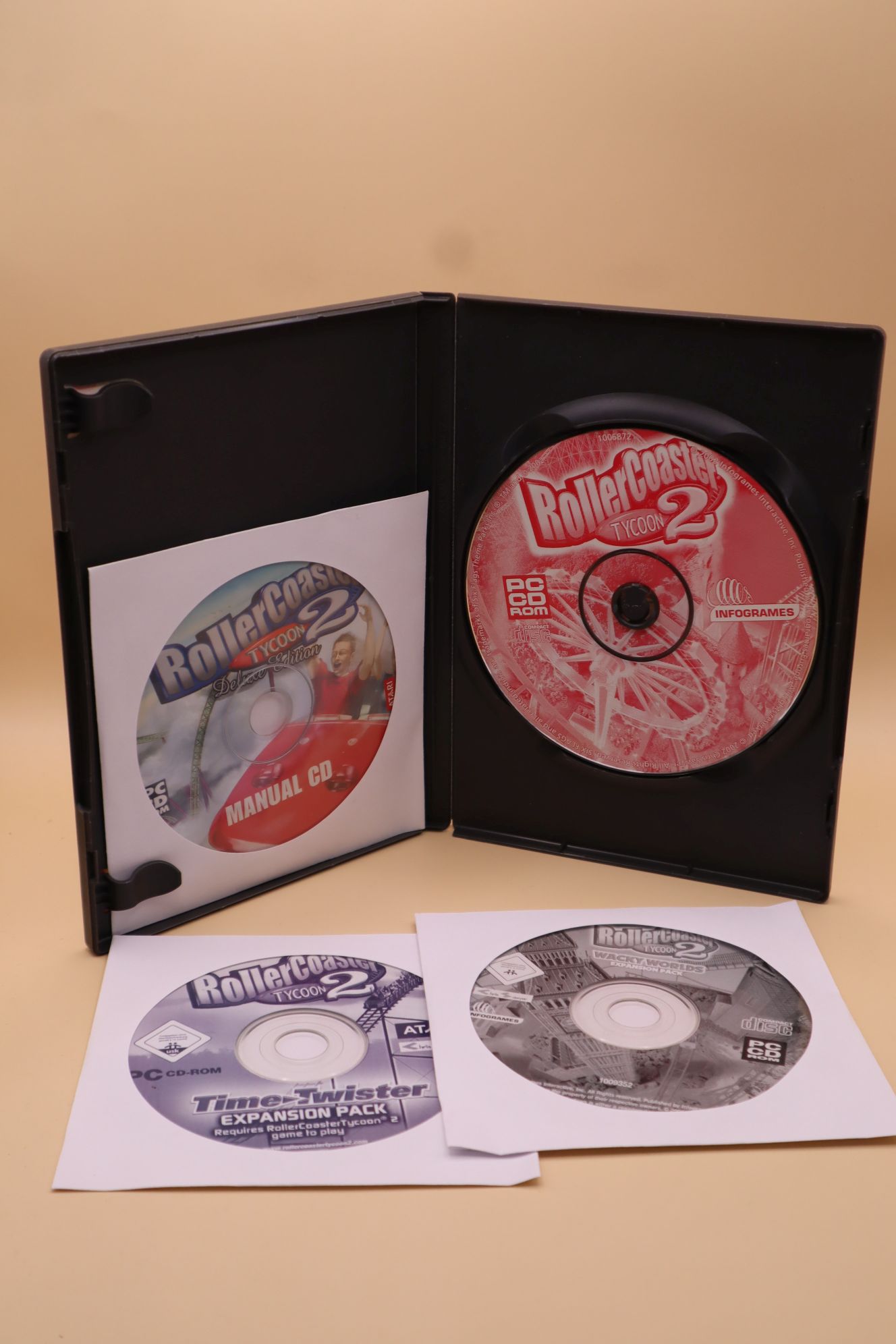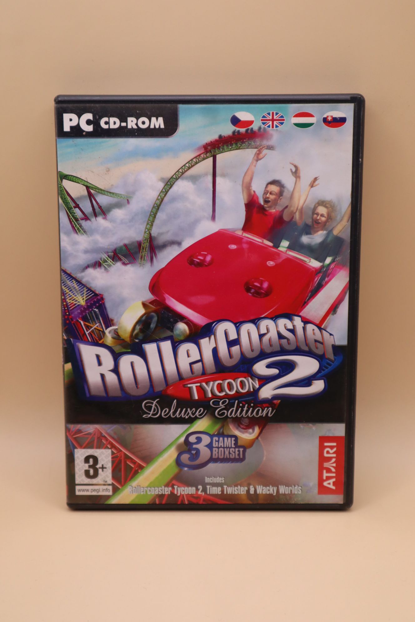 Hullámvasút tervező / szimulátor. Kiadás éve: 2004. Platform: Windows 98/ME/2000/XP. Kivitel: dvd tokos, első kiadás, magyar/angol/cseh/szlovák feliratos borító, eredeti 4 cd, angol, holland, francia, német, olasz, spanyol és svéd nyelvű játék. Tartalmazza az alapjátékot és a Wacky Worlds és a Time Twister kiegészítőket. CD-k állapota: meglehetősen karcos (hajszálkarcok), tesztelt, működik
