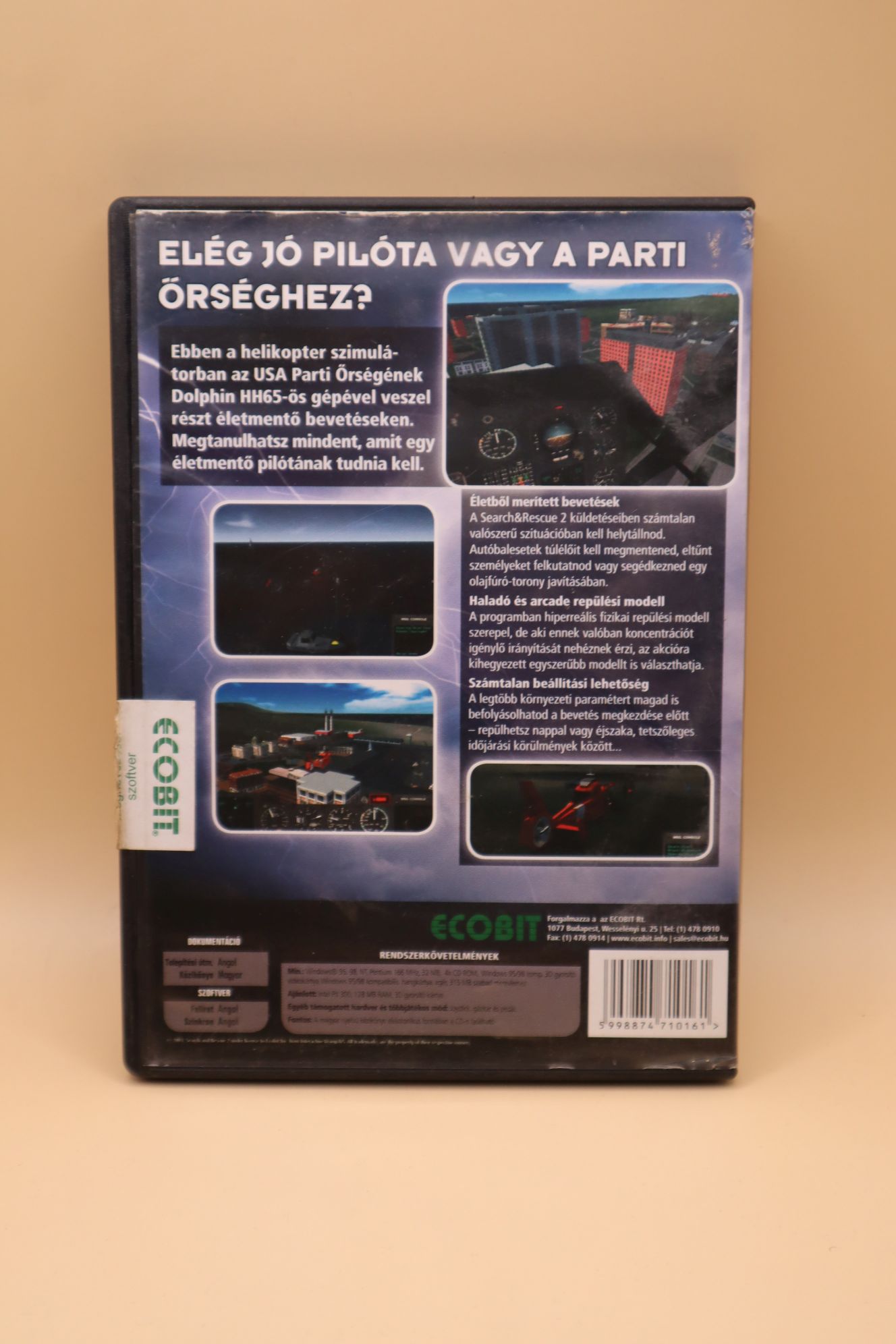Mentőhelikopter szimulátor. Kiadás éve: 2002. Platform: Windows 95/98/NT. Kivitel: dvd tokos, első kiadás, magyar feliratos borító, eredeti cd, angol nyelvű játék. CD állapota: enyhén karcos (hajszálkarcok), tesztelt, működik