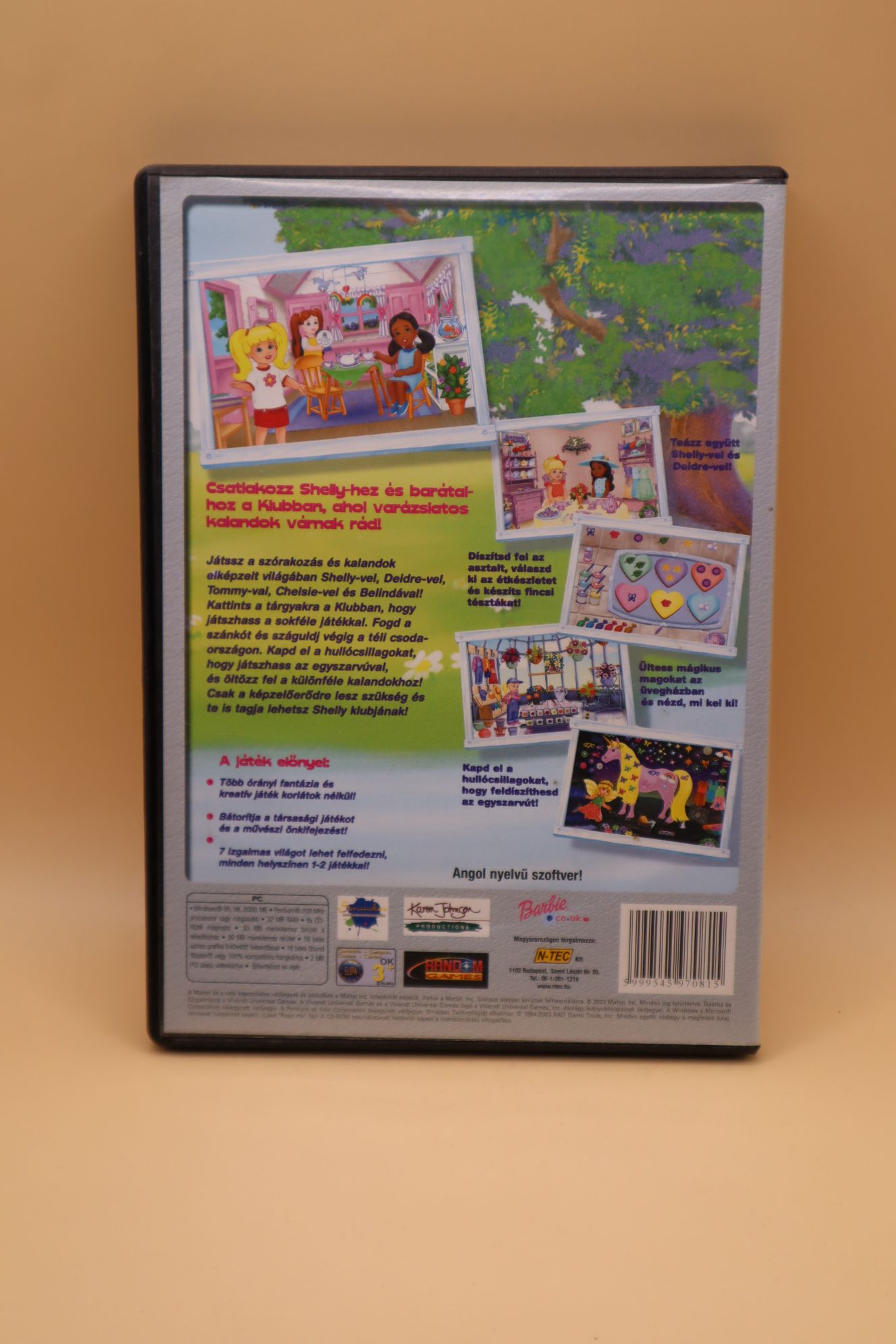 Barbie babás akciójáték. Kiadás éve: 2003. Platform: Windows 95/98/ME/2000. Kivitel: dvd tokos, BestSeller Junior kiadás, magyar feliratos borító, magyar nyelvű papírkézikönyv, eredeti cd, angol nyelvű játék. CD állapota: enyhén karcos (hajszálkarcok), tesztelt, működik