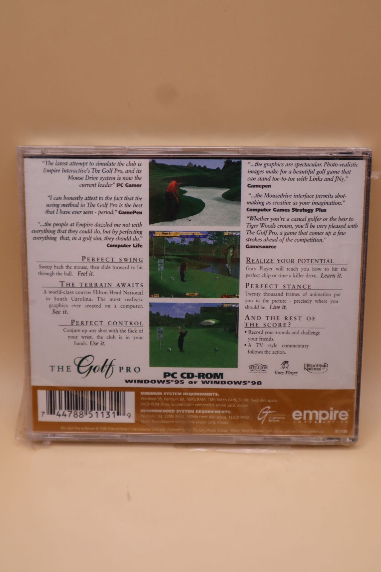 Golf szimulátor játék. Kiadás éve: 1998. Platform: Windows 95/98. Kivitel: cd tokos, első kiadás, angol feliratos borítók, eredeti cd, angol nyelvű játék. Bontatlan fóliás (bár sérült a fólia).