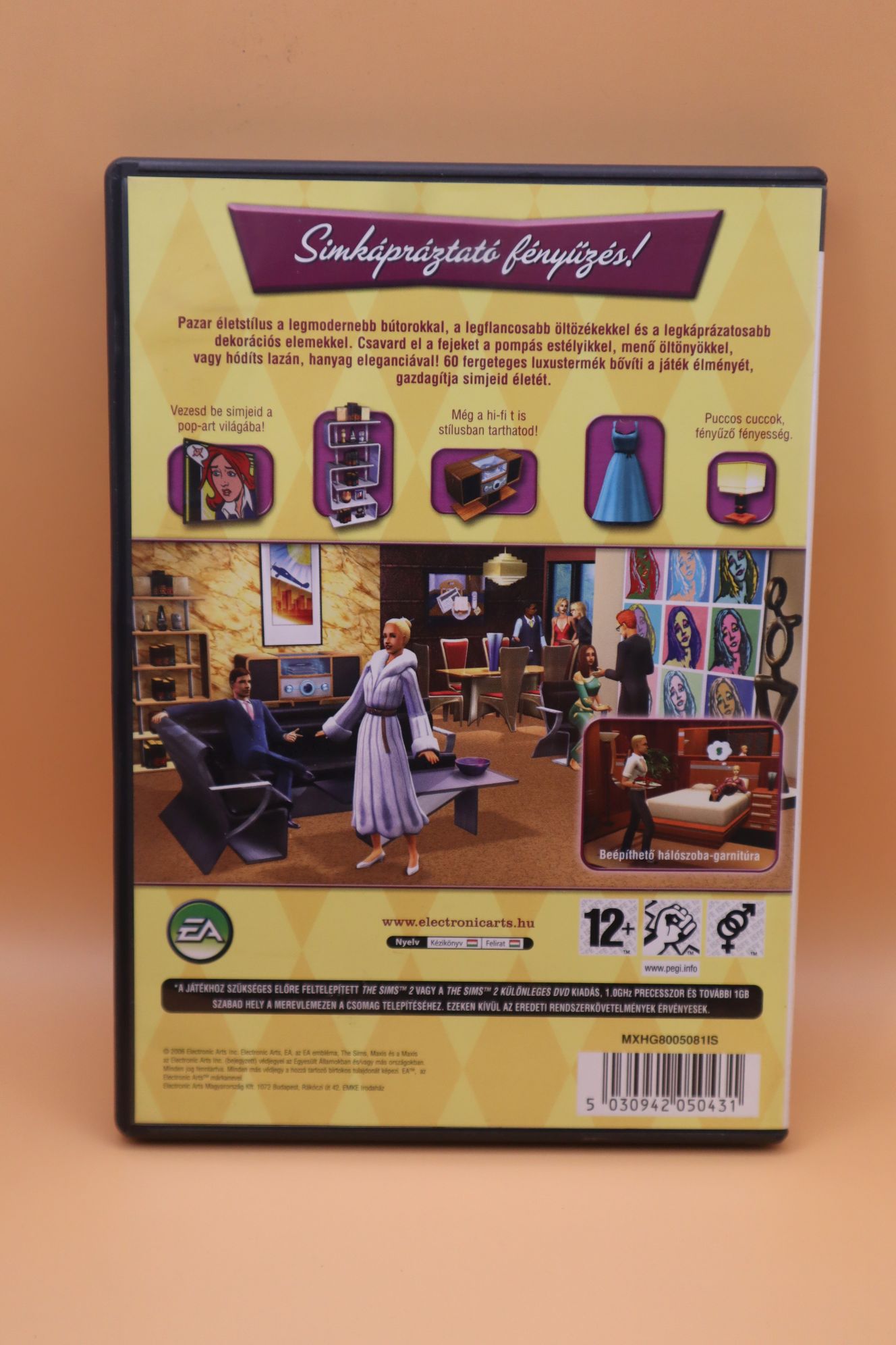 Életszimulátor játék. Kiadás éve: 2006. Platform: Windows 98/ME/2000/XP. Kivitel: dvd tokos, első kiadás, magyar feliratos borító, magyar nyelvű papírkézikönyv, eredeti cd, magyar feliratos és angol, cseh, dán, német, spanyol, francia, finn, olasz, holland, norvég, portugál, brazíliai portugál, lengyel, orosz, svéd nyelvű játék. Kiegészítő lemez, a Sims 2 alapjáték szükséges a futtatásához! CD állapota: karcmentes, újnak tűnik
