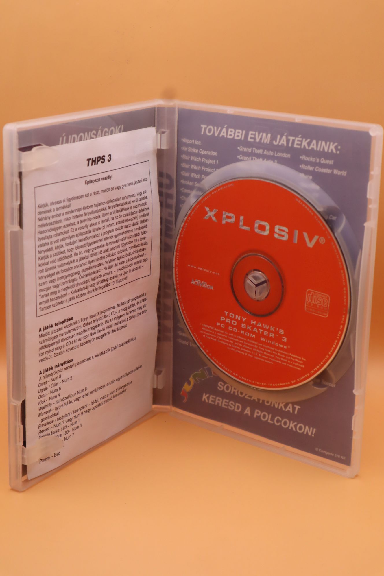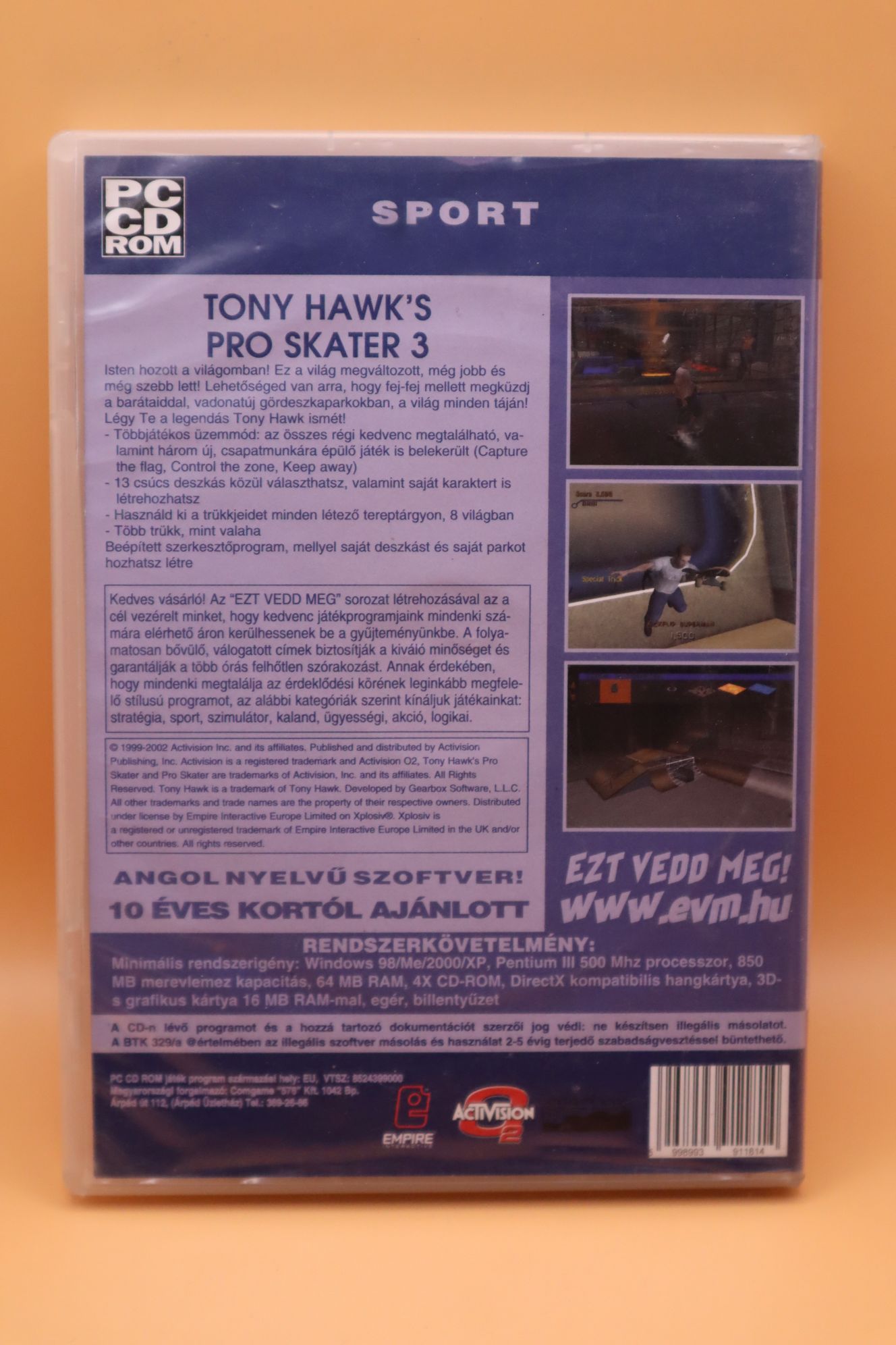 Gördeszkás játék. Kiadás éve: 2001. Platform: Windows 98/ME/2000/XP. Kivitel: dvd tokos, EVM kiadás, magyar feliratos borító, rövid magyar nyelvű leírás, eredeti CD, angol nyelvű játék. CD állapota: enyhén karcos (hajszálkarcok), tesztelt, működik