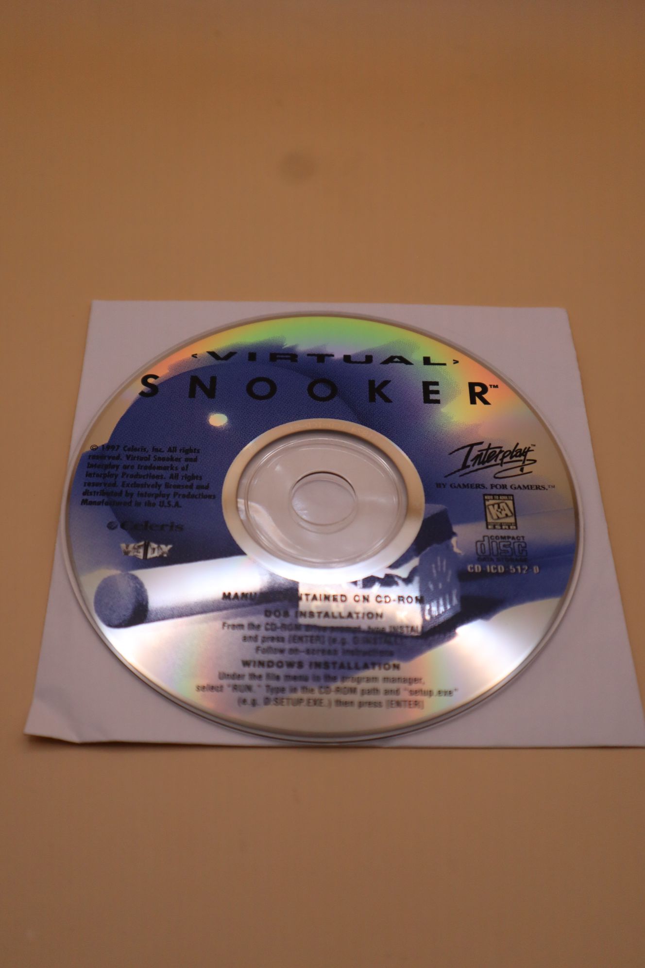 Sportjáték – biliárd. Kiadás éve: 1996. Platform: DOS és Windows 3.x/95. Kivitel: cd tokos, első kiadás, borítók nélkül, angol nyelvű játék, csak a CD, állapota: meglehetősen karcos (hajszálkarcok), tesztelt, működik